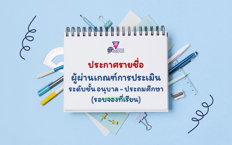 ประกาศรายชื่อผู้ผ่านเกณฑ์การประเมินระดับชั้น อนุบาล - ประถมศึกษา ปีการศึกษา 2564